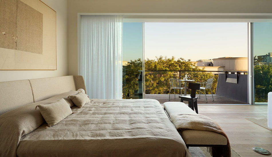 - Swiss-made, museum-quality operable glazing system by Vitrocsa, featuring ultraclear, triple- glazed, low-iron suryotural glass and minimalisi 3⁄4” wide frames